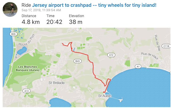 The return flight was exceptionally cheap when I looked in late September for end of summer mini-vacations. I did some basic research about the late summer / early fall climate as well as the terrain and roads there. I concluded that the Pacific CarryMe was the perfect bike for this brief holiday since Jersey roads were in much better condition (vs. Manchester). Furthermore, the hilly terrain of the interior plus the shrunken scale of everything on the island meant that covering too much ground could wear down the variety of my experiences there before the end of the trip.