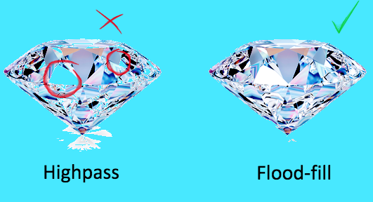 This naive method had a problem though. There could be many false positives inside the image of a shiny item since the code was using a high pass filter on all the pixels.